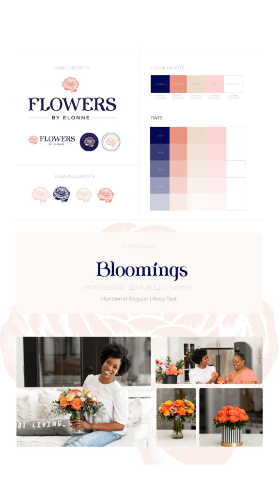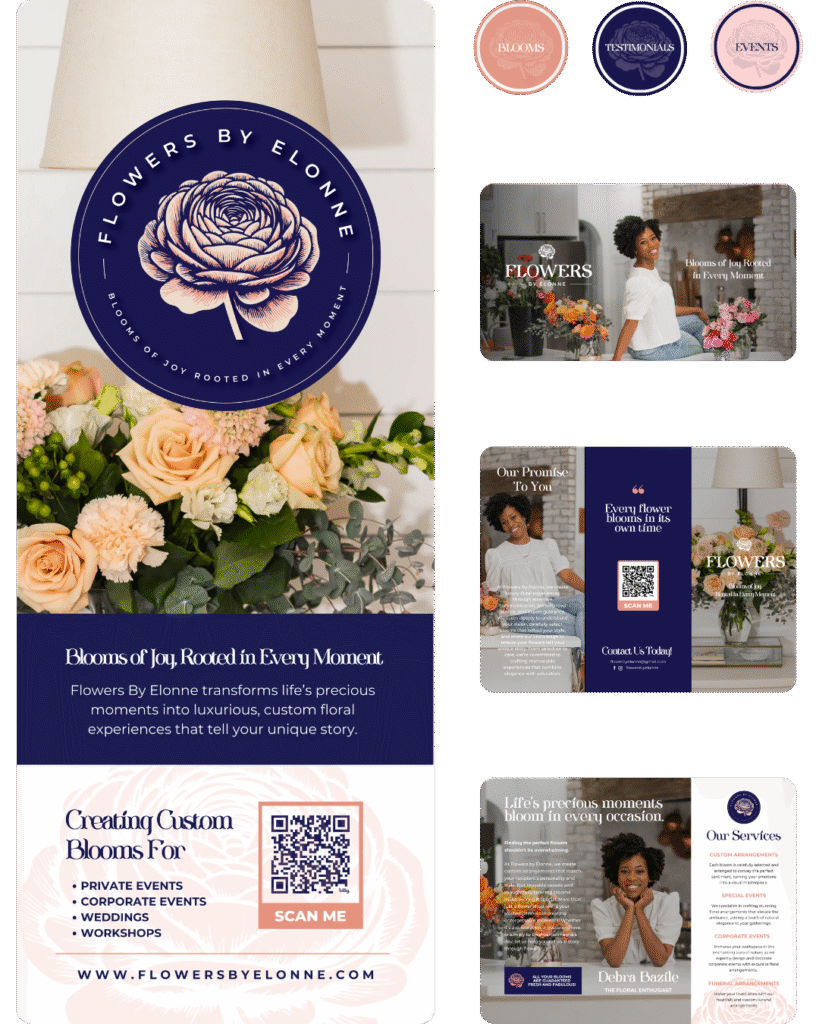 Flowers By Elonne is a boutique floral design business led by Debra Bazile, a talented florist whose artistic arrangements set her apart in the competitive floral industry. While her work spoke for itself, she struggled with brand identity—from choosing the right colors to understanding typography and professional positioning. She needed a personal brand and digital presence that would attract higher-end clientele and give her the confidence to own her business identity.