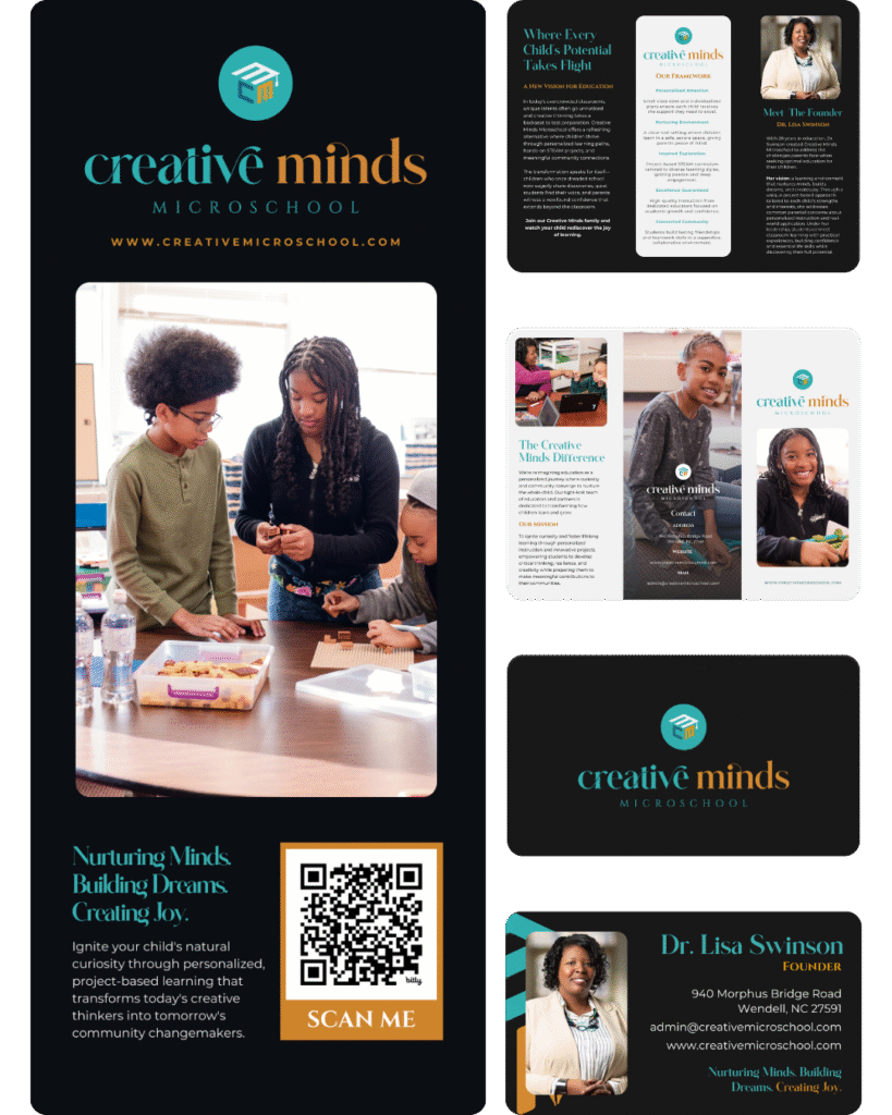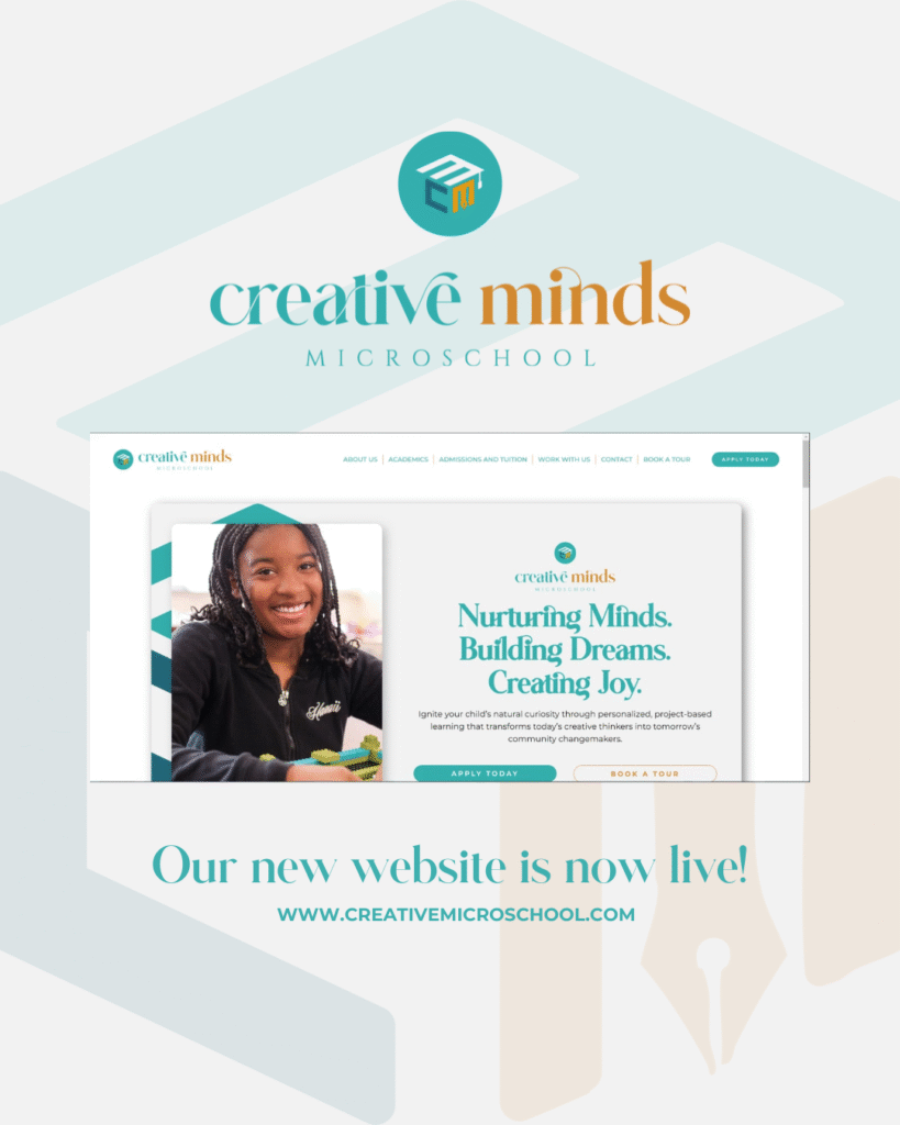 Creative Minds Microschool offers personalized, project-based learning for K-8 students in an innovative educational environment. Founded on the principle that every child learns differently, Creative Minds needed a brand and operational system that could communicate their unique approach to families while streamlining their enrollment, communication, and administrative processes.