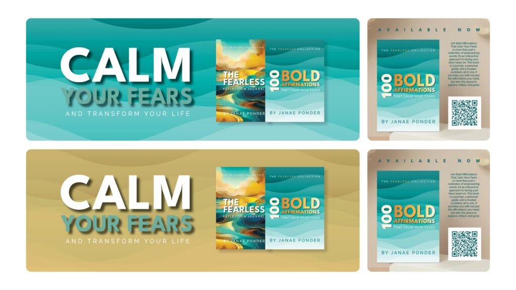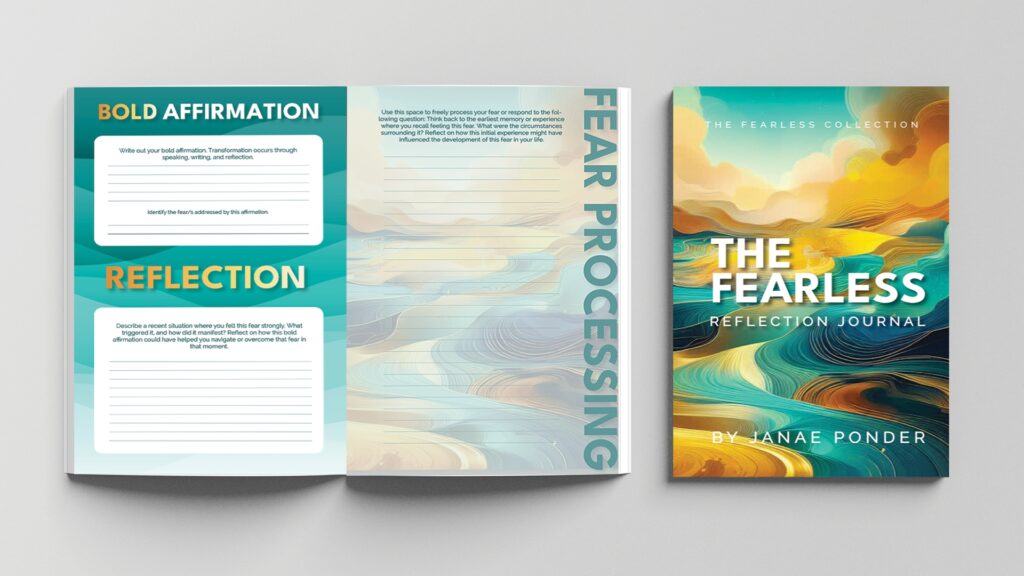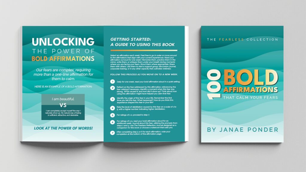 Janae Ponder, through her practice Life-Spire Counseling, developed The Fearless Collection—a transformative set of tools designed to help people calm and overcome their fears. The collection features two publications: The Fearless Reflection Journal and 100 Bold Affirmations That Calm Your Fears. As a mental health professional, Janae needed publication designs that would make these powerful therapeutic tools accessible, inviting, and visually compelling to support her clients’ healing journeys.